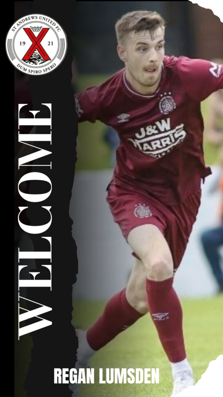 St Andrews United FC is delighted to announce the signing of forward Regan Lumsden from Linlithgow Rose. At 26 years old, the Scottish attacker brings proven goal-scoring ability and versatility to the Saints’ frontline.
