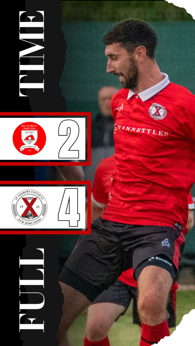 St Andrews United travelled to Keirs Park on Wednesday evening to face Hill of Beath Hawthorn in the Fife Cup — Saints produced a superb all-round performance to record a thrilling 4–2 victory and finally break their “Haws hoodoo.”