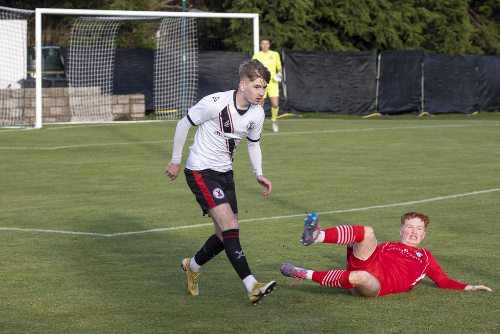 However, the match itself started in the worst possible fashion for St Andrews Utd. Whitburn struck in the 5th minute, a powerful effort from the edge of the area from Crawford beating Fleming. Just four minutes later, the visitors doubled their lead with a simple cross and finish from Crawford, leaving Saints stunned and with a mountain to climb.