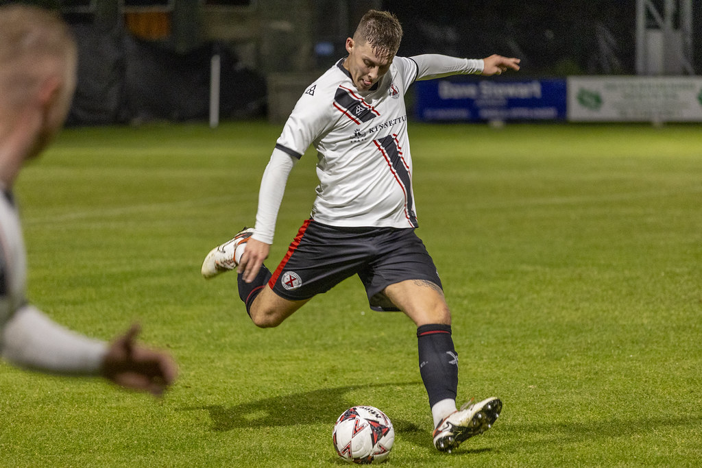 The visitors opened the scoring in the fifth minute when a driven strike inside the box struck a Saints defender’s hand. The referee immediately awarded a penalty, which Kemp converted confidently, placing the ball into the corner to give Penicuik an early advantage.