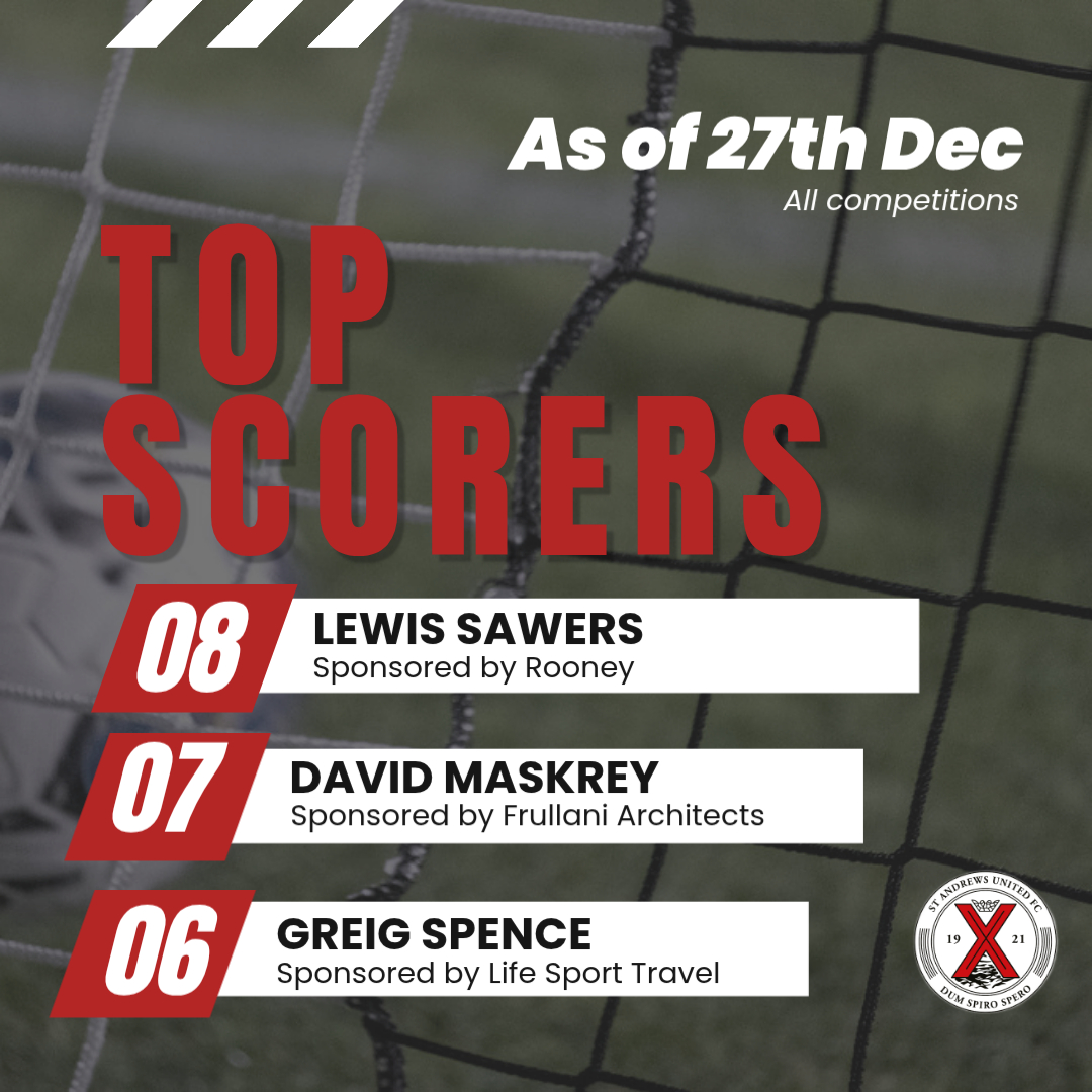 St Andrews Utd’s leading goal-scorers as of 27th December 2025 are as follows… ⚽👟