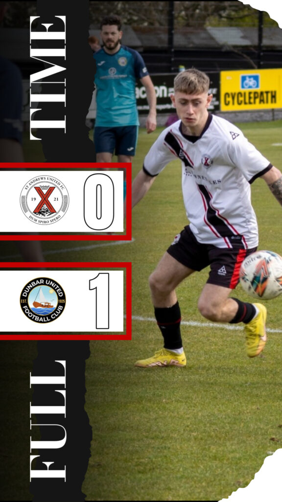 St Andrews United produced a spirited display despite adversity but ultimately slipped to a narrow 1–0 defeat against Dunbar United this afternoon.