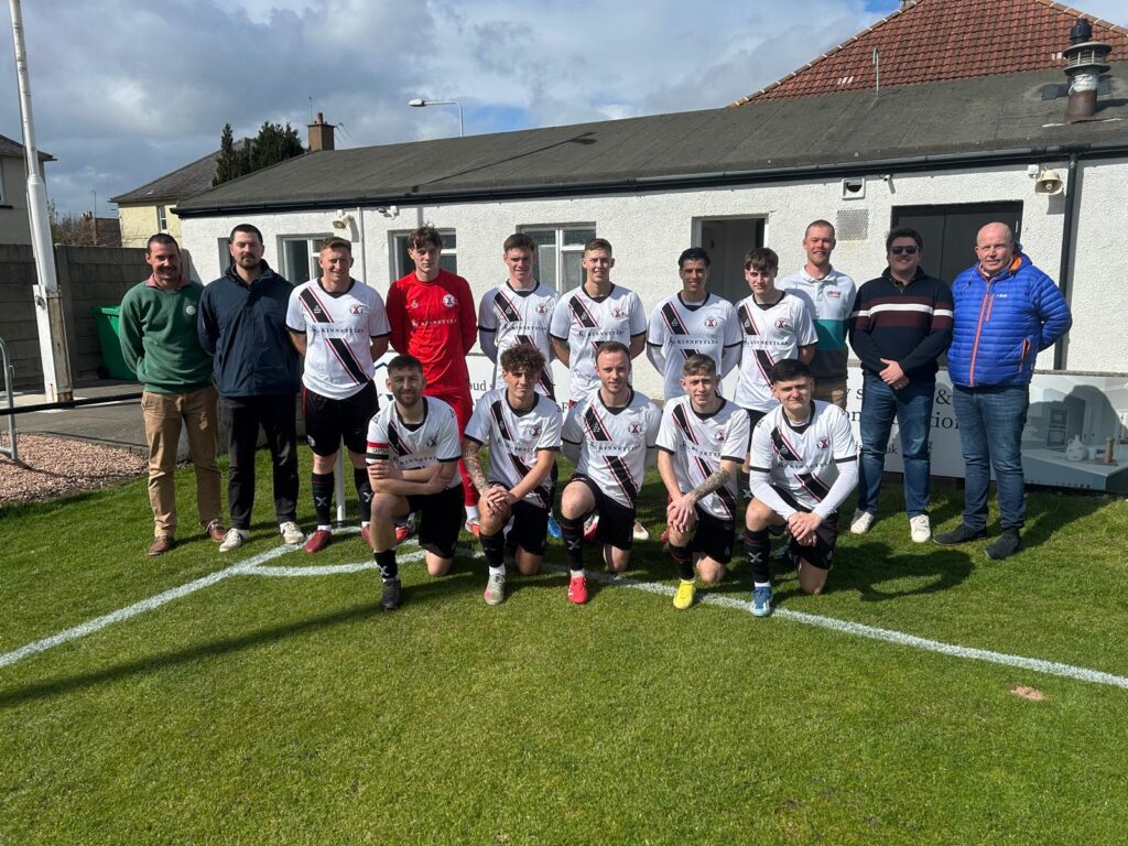 Man of The Match – Finlay Allan being presented with his award by My International Office, match sponsors of the 5-2 win over Dunipace. Thank you for your support!
